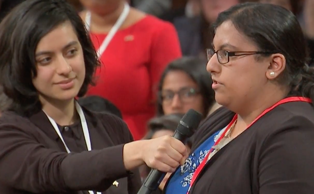 Maria Munir, whose parents did not know about the 20-year-old's gender identity, stood up at a town hall Q&A hosted by Obama for young people and publicly declared for the first time they identified as a non-binary individual. Non-binary identities are those that do not fit within the binary of male or female.